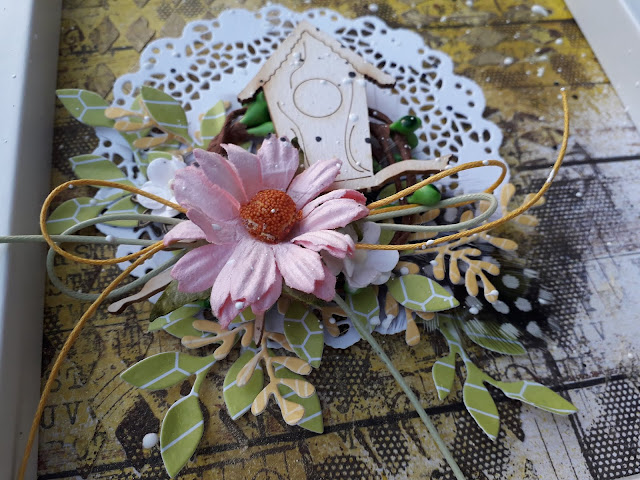 Wykorzystać należy obowiązkowo, przynajmniej jeden element tekturki (ptaszki, gałązka z budką), chociaż jedną gałązkę z pąkami (białe, zielone), piórka, kwiatki papierowe lub metalowe (można użyć obydwu), co najmniej trzy rodzaje papierów z zestawu.